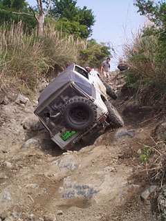 ビグロンは途中まで自走で登りましたが、その後、バックも(恐くて)できず、先に登頂済みのタカオカ号をアンカにウインチングで登頂