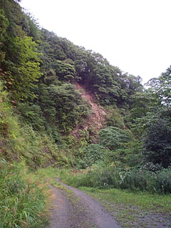 高宕線の入り口です 残念っ! 崖崩れの為、通行止めです せっかく来たんだから、現場まで行って引き返しゃいいや… もしかしたら、向こう側に抜けられるかも知れないし… …なんて事、絶対やっちゃいけません 気持ちは分かりますが… |