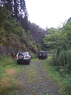 高宕線はこんな感じで始まりますが、進むにつれてもっと険しく(楽しく)なります。 ブッシュでボディに擦り傷が付くのが気になる車は通行止めじゃなくても入れません |