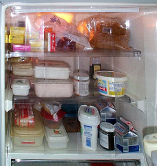 見え難いとは思いますが、冷蔵庫にビニールのカーテン付けました